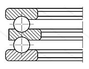 Подшипник упорный шариковый двойной 38212 в конструкцию которого входит свободная внешняя и тугая внутренняя шины (последняя жестко фиксируется на валу), сепаратор и заключенные в нем тела качения. При наличии двух рядов шарикоподшипников изделие комплектуется парой сепараторов. Может иметь подкладную обойму.